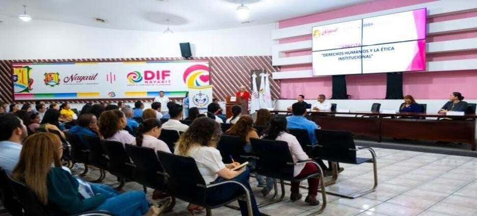 Con el objetivo de garantizar que el trabajo y la atención que se otorgan en el Sistema DIF Nayarit, que preside la doctora Beatriz Estrada Martínez, se realicen bajo los principios de ética y responsabilidad, especialistas de la Comisión de Defensa de los Derechos Humanos para el Estado de Nayarit (CDDHN) llevaron a cabo la capacitación: “Derechos Humanos en la Ética Institucional”, dirigida al equipo de trabajo del Corazón de Nayarit.