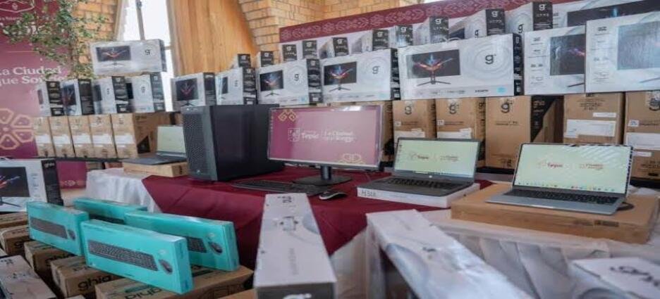 La presidenta municipal de Tepic, Geraldine Ponce, hizo entrega de 107 computadoras para las y los trabajadores del Ayuntamiento.